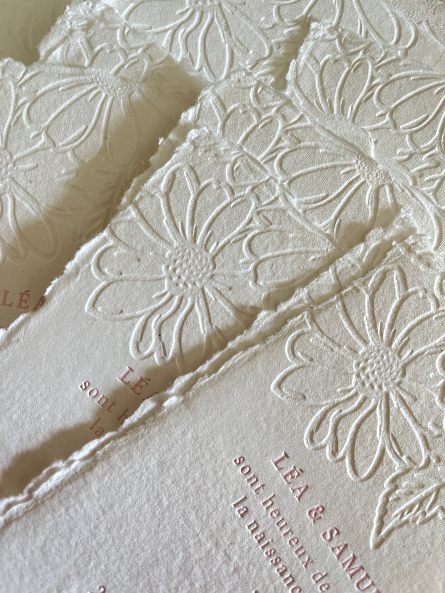 Le letterpress imprime plus qu'un nom ou une date. Il imprime une émotion, un relief délicat. Il donne à voir et à ressentir.