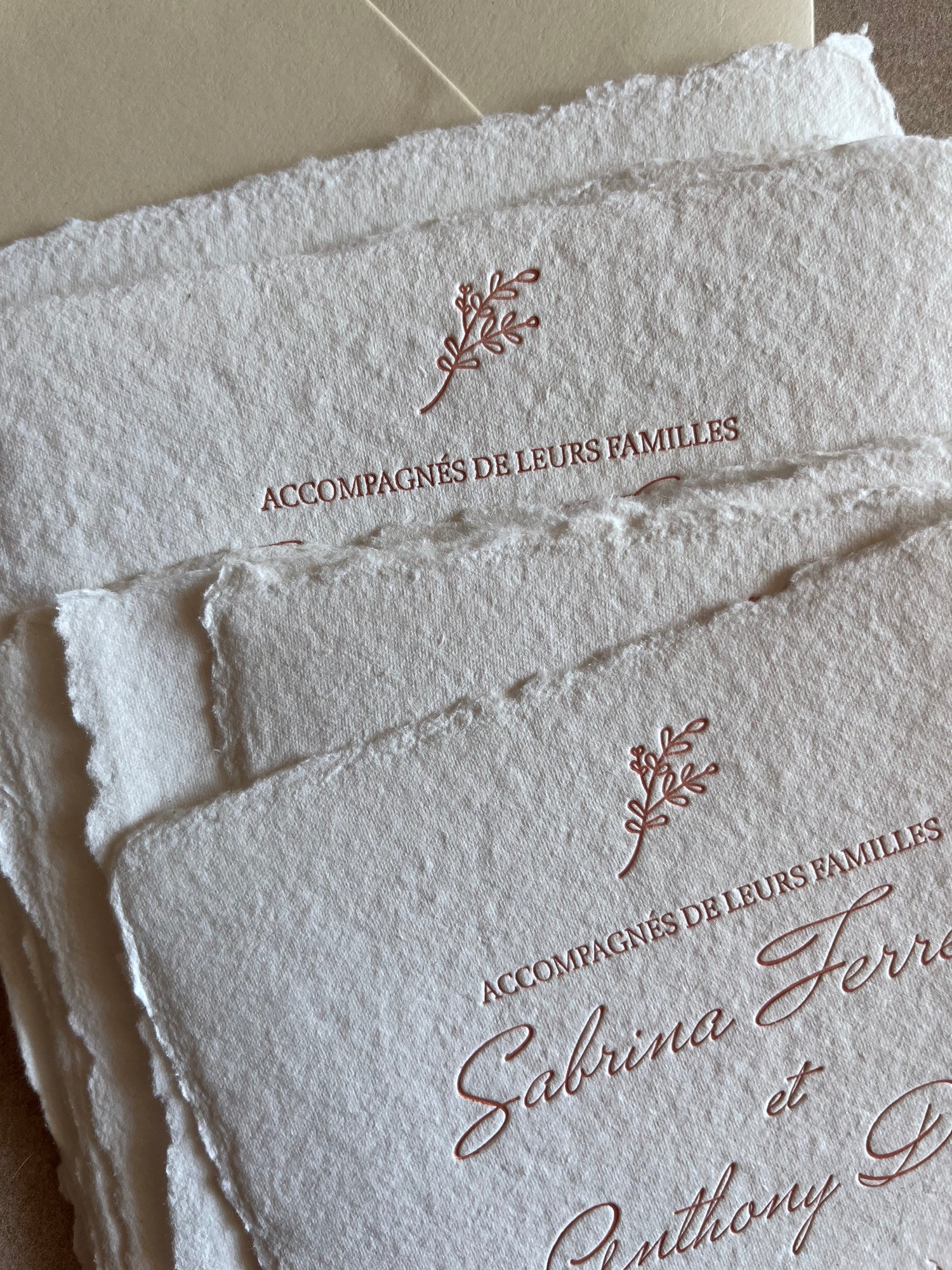 Nous mettons également l’accent sur nos valeurs environnementales avec une machine d’impression typographique manuelle qui ne consomme aucune électricité. Du papier fait main et recyclé auprès d'artisans français ou bien en 100% coton.