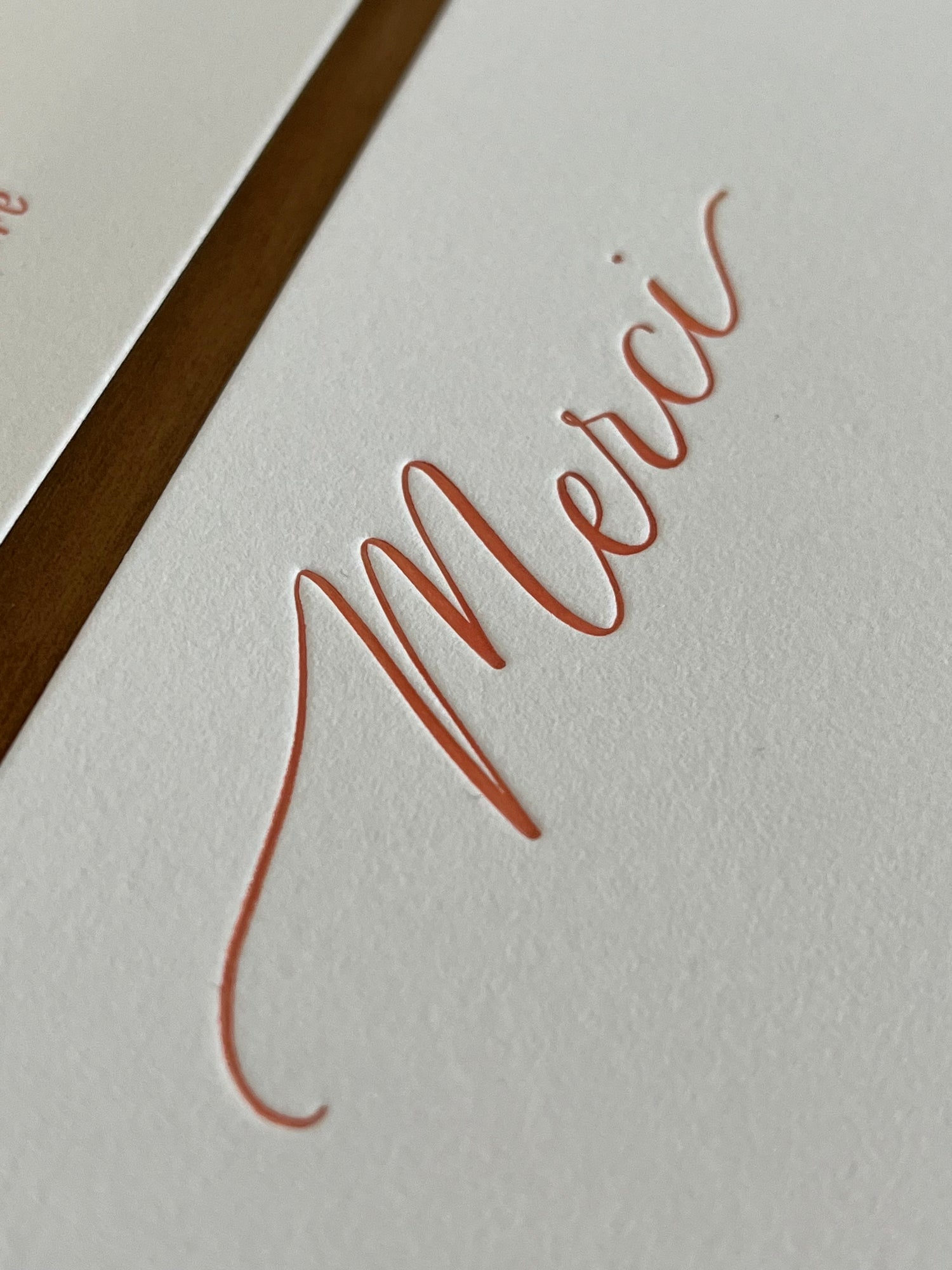 Une impression letterpress associée à des papiers de qualité, apporte un caractère unique et une touche intemporelle à vos supports de communication.